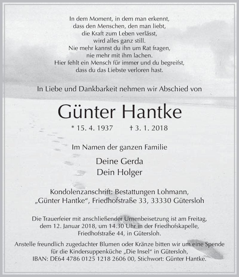Hier finden Sie alle Traueranzeigen aus der Zeitung, die bisher für Günter Hantke erschienen sind. Weitere Traueranzeigen, die in der Zeitung erscheinen, werden hier ebenfalls aufgelistet