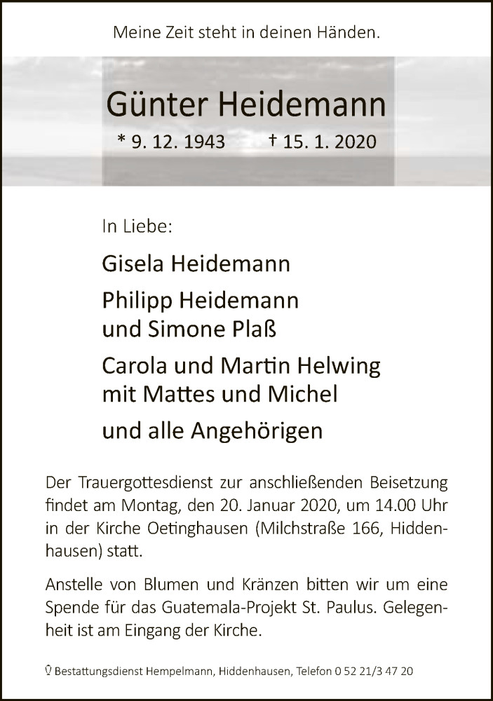 Hier finden Sie alle Traueranzeigen aus der Zeitung, die bisher für Günter Heidemann erschienen sind. Weitere Traueranzeigen, die in der Zeitung erscheinen, werden hier ebenfalls aufgelistet
