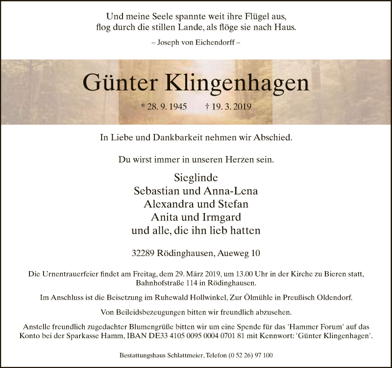 Hier finden Sie alle Traueranzeigen aus der Zeitung, die bisher für Günter Klingenhagen erschienen sind. Weitere Traueranzeigen, die in der Zeitung erscheinen, werden hier ebenfalls aufgelistet
