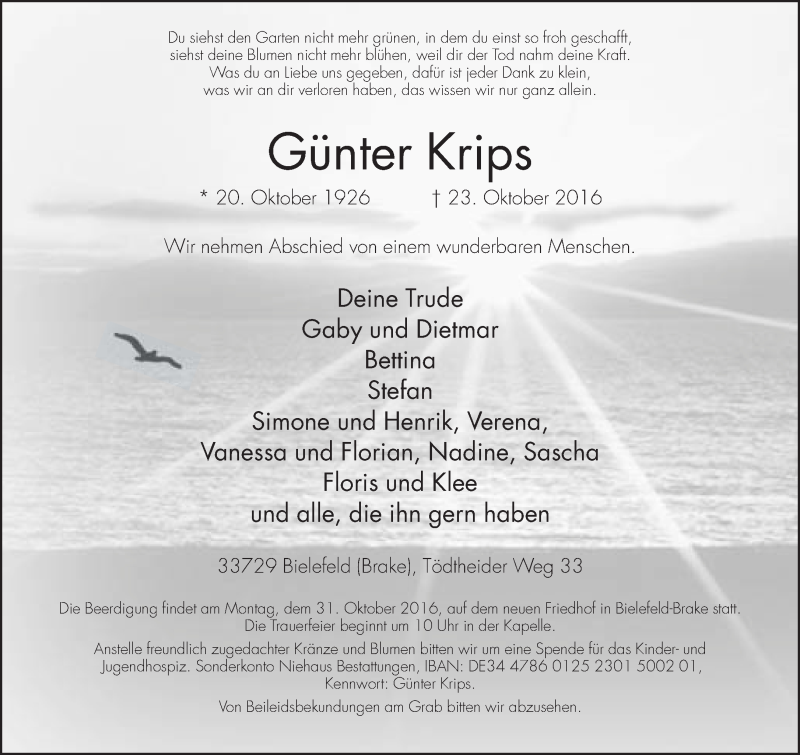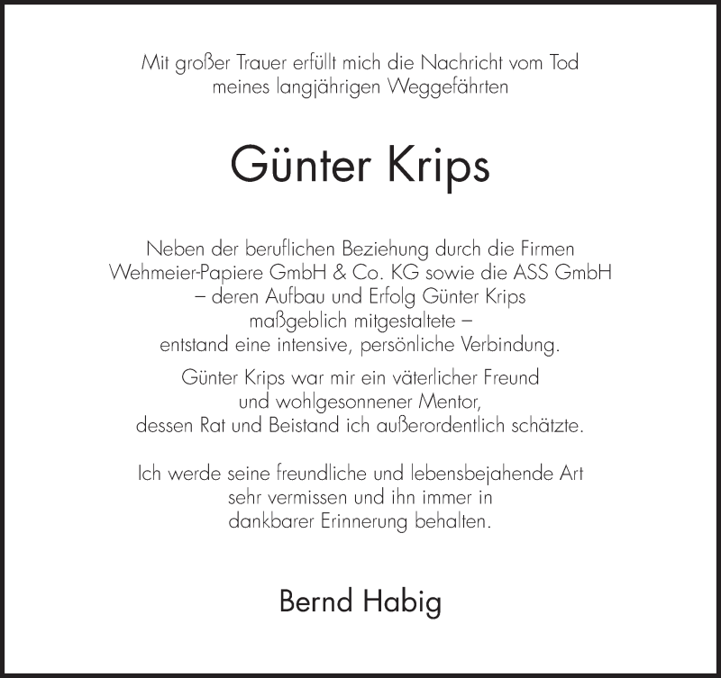 Hier finden Sie alle Traueranzeigen aus der Zeitung, die bisher für Günter Krips erschienen sind. Weitere Traueranzeigen, die in der Zeitung erscheinen, werden hier ebenfalls aufgelistet