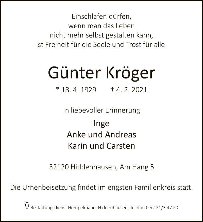 Hier finden Sie alle Traueranzeigen aus der Zeitung, die bisher für Günter Kröger erschienen sind. Weitere Traueranzeigen, die in der Zeitung erscheinen, werden hier ebenfalls aufgelistet