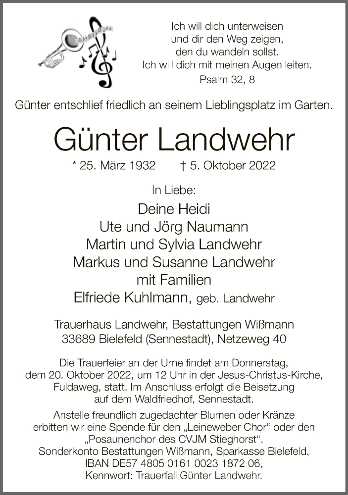 Hier finden Sie alle Traueranzeigen aus der Zeitung, die bisher für Günter Landwehr erschienen sind. Weitere Traueranzeigen, die in der Zeitung erscheinen, werden hier ebenfalls aufgelistet