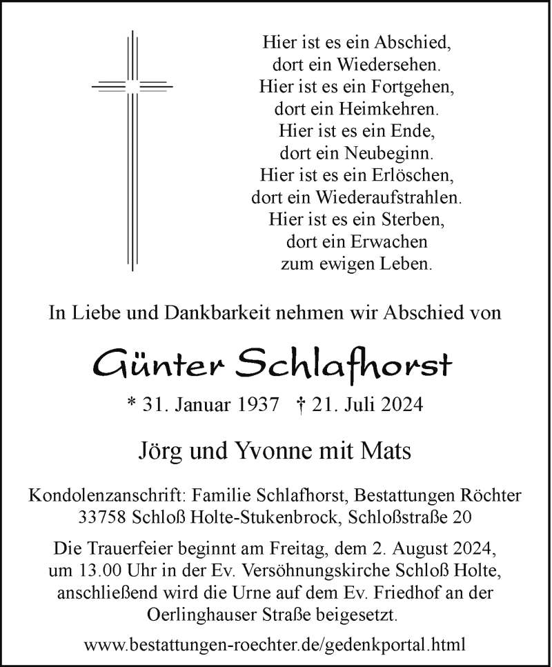 Hier finden Sie alle Traueranzeigen aus der Zeitung, die bisher für Günter Schlafhorst erschienen sind. Weitere Traueranzeigen, die in der Zeitung erscheinen, werden hier ebenfalls aufgelistet