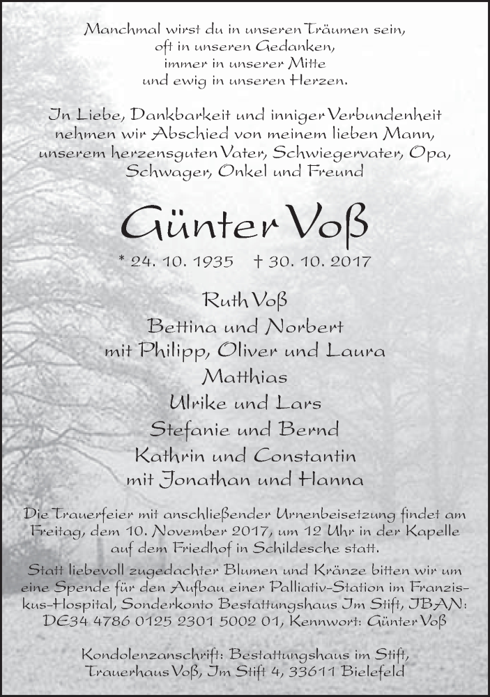 Hier finden Sie alle Traueranzeigen aus der Zeitung, die bisher für Günter Voß erschienen sind. Weitere Traueranzeigen, die in der Zeitung erscheinen, werden hier ebenfalls aufgelistet