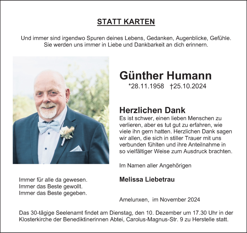 Hier finden Sie alle Traueranzeigen aus der Zeitung, die bisher für Günther Humann erschienen sind. Weitere Traueranzeigen, die in der Zeitung erscheinen, werden hier ebenfalls aufgelistet