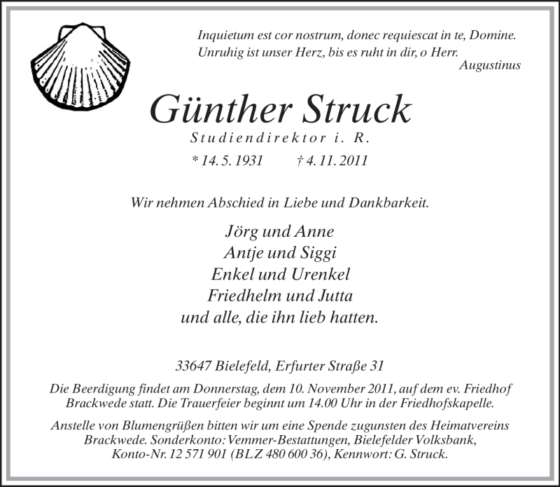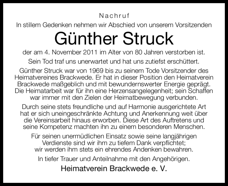 Hier finden Sie alle Traueranzeigen aus der Zeitung, die bisher für Günther Struck erschienen sind. Weitere Traueranzeigen, die in der Zeitung erscheinen, werden hier ebenfalls aufgelistet