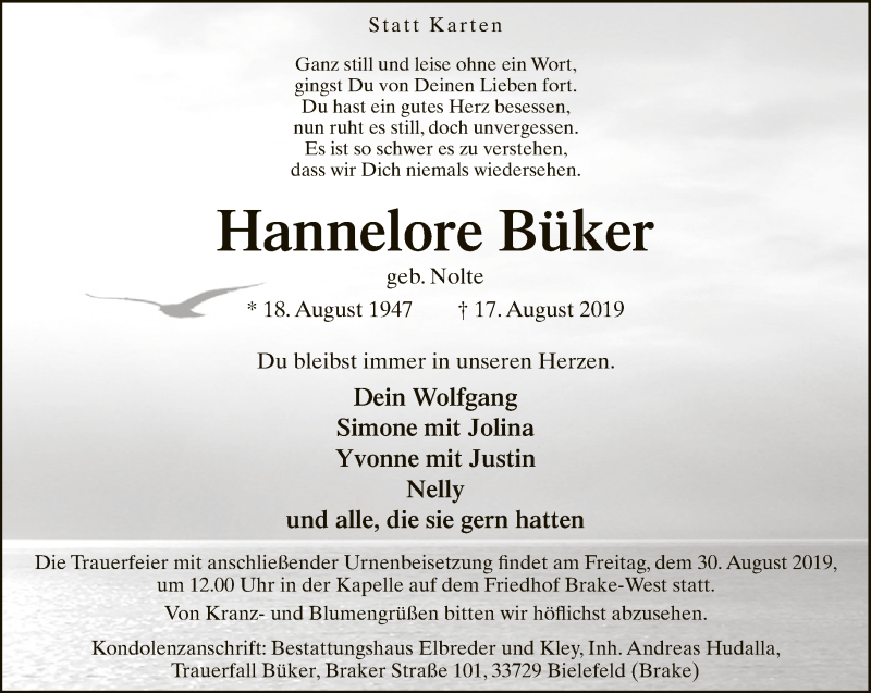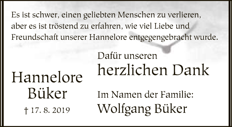 Hier finden Sie alle Traueranzeigen aus der Zeitung, die bisher für Hannelore Büker erschienen sind. Weitere Traueranzeigen, die in der Zeitung erscheinen, werden hier ebenfalls aufgelistet