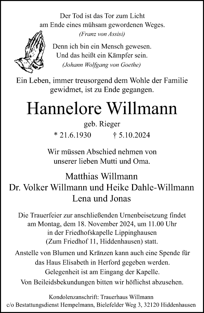 Hier finden Sie alle Traueranzeigen aus der Zeitung, die bisher für Hannelore Willmann erschienen sind. Weitere Traueranzeigen, die in der Zeitung erscheinen, werden hier ebenfalls aufgelistet