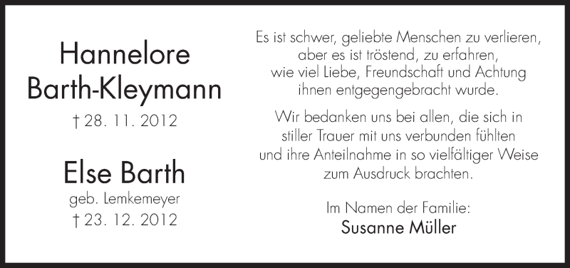 Hier finden Sie alle Traueranzeigen aus der Zeitung, die bisher für Hannelore und Else Barth erschienen sind. Weitere Traueranzeigen, die in der Zeitung erscheinen, werden hier ebenfalls aufgelistet