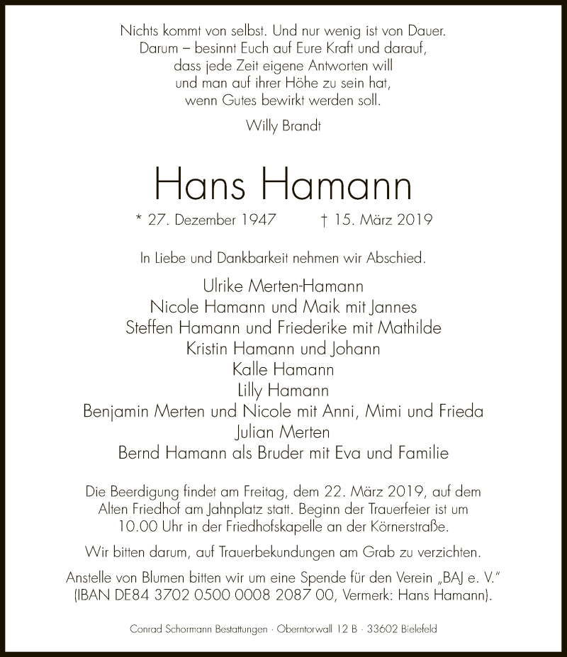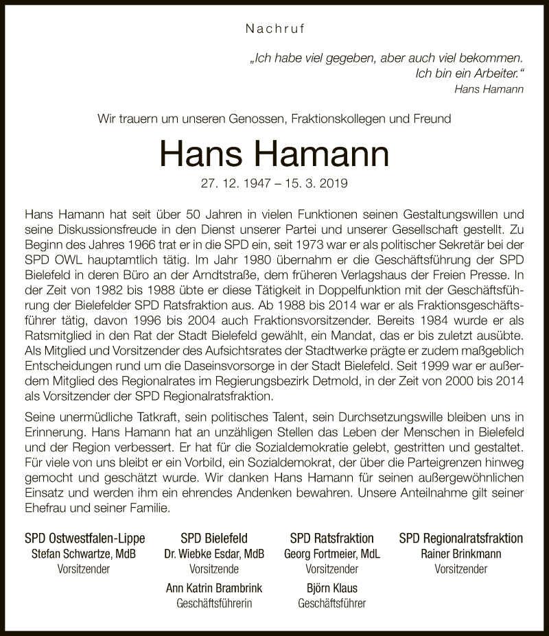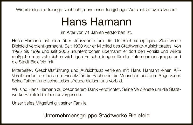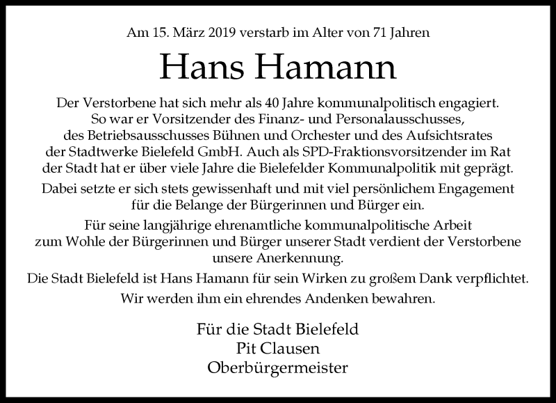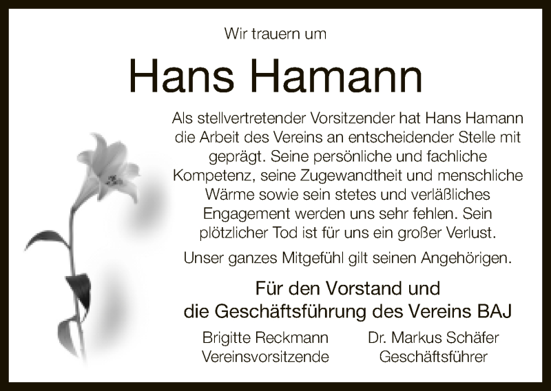 Hier finden Sie alle Traueranzeigen aus der Zeitung, die bisher für Hans Hamann erschienen sind. Weitere Traueranzeigen, die in der Zeitung erscheinen, werden hier ebenfalls aufgelistet
