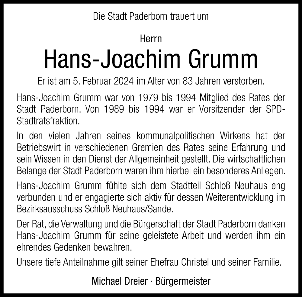Hier finden Sie alle Traueranzeigen aus der Zeitung, die bisher für Hans-Joachim Grumm erschienen sind. Weitere Traueranzeigen, die in der Zeitung erscheinen, werden hier ebenfalls aufgelistet