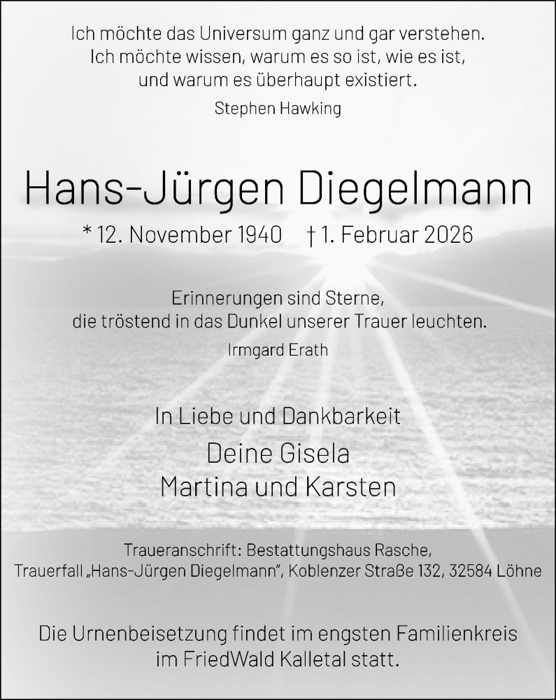 Hier finden Sie alle Traueranzeigen aus der Zeitung, die bisher für Hans-Jürgen Diegelmann erschienen sind. Weitere Traueranzeigen, die in der Zeitung erscheinen, werden hier ebenfalls aufgelistet