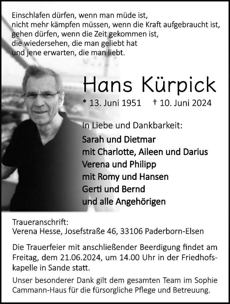 Hier finden Sie alle Traueranzeigen aus der Zeitung, die bisher für Hans Kürpick erschienen sind. Weitere Traueranzeigen, die in der Zeitung erscheinen, werden hier ebenfalls aufgelistet