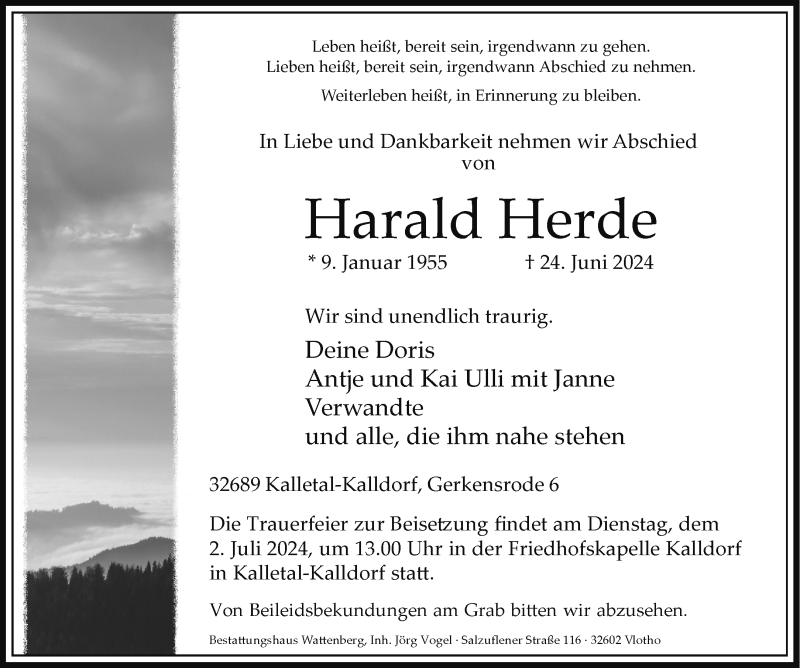 Hier finden Sie alle Traueranzeigen aus der Zeitung, die bisher für Harald Herde erschienen sind. Weitere Traueranzeigen, die in der Zeitung erscheinen, werden hier ebenfalls aufgelistet