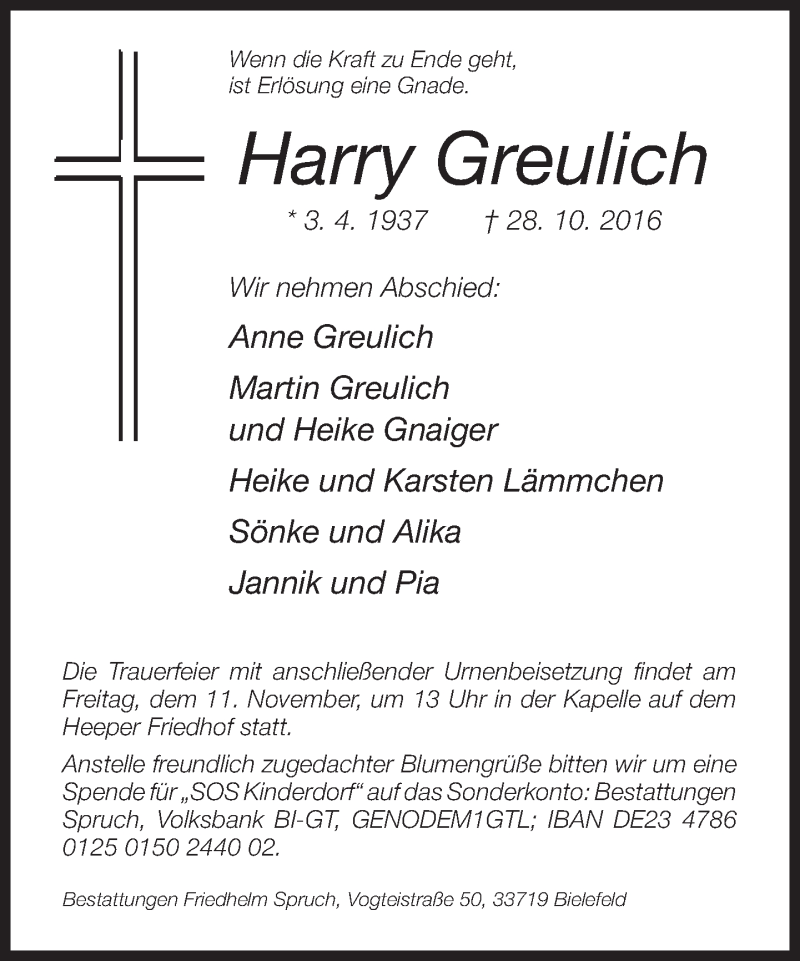 Hier finden Sie alle Traueranzeigen aus der Zeitung, die bisher für Harry Greulich erschienen sind. Weitere Traueranzeigen, die in der Zeitung erscheinen, werden hier ebenfalls aufgelistet