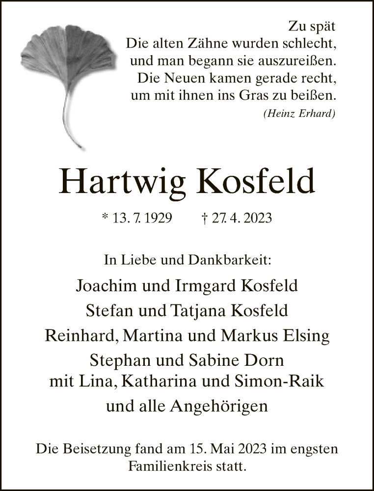 Hier finden Sie alle Traueranzeigen aus der Zeitung, die bisher für Hartwig Kosfeld erschienen sind. Weitere Traueranzeigen, die in der Zeitung erscheinen, werden hier ebenfalls aufgelistet