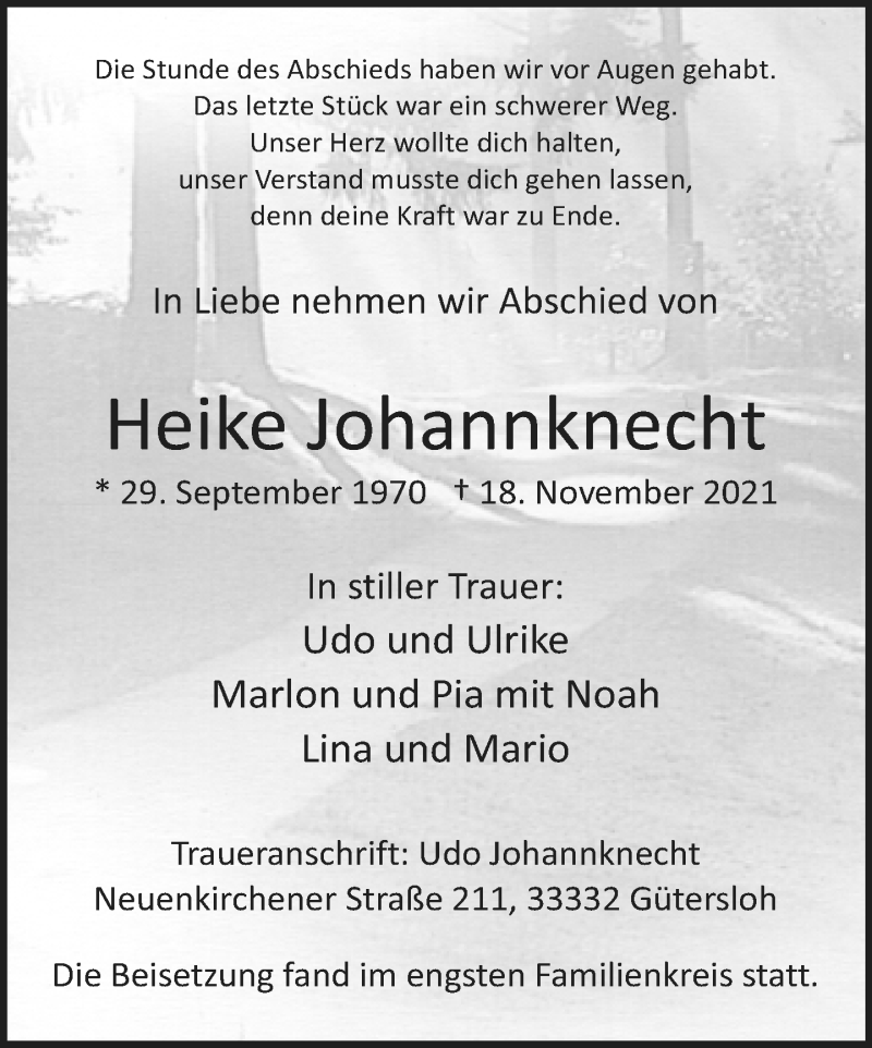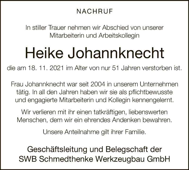 Hier finden Sie alle Traueranzeigen aus der Zeitung, die bisher für Heike Johannknecht erschienen sind. Weitere Traueranzeigen, die in der Zeitung erscheinen, werden hier ebenfalls aufgelistet