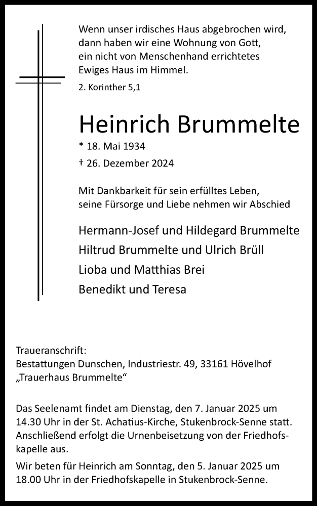 Hier finden Sie alle Traueranzeigen aus der Zeitung, die bisher für Heinrich Brummelte erschienen sind. Weitere Traueranzeigen, die in der Zeitung erscheinen, werden hier ebenfalls aufgelistet