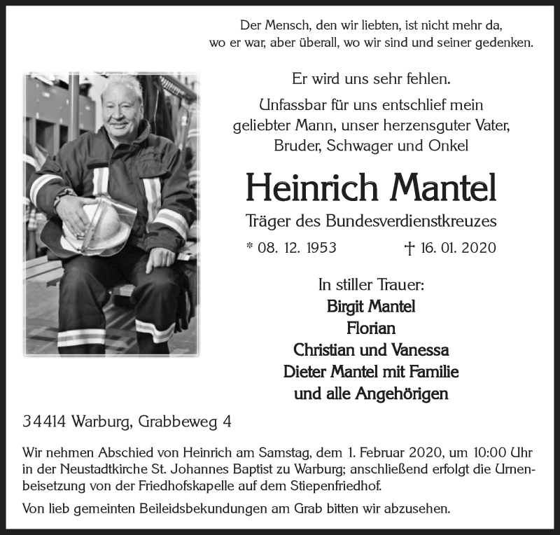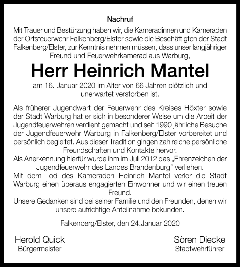 Hier finden Sie alle Traueranzeigen aus der Zeitung, die bisher für Heinrich Mantel erschienen sind. Weitere Traueranzeigen, die in der Zeitung erscheinen, werden hier ebenfalls aufgelistet