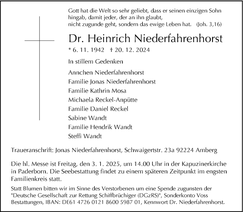 Hier finden Sie alle Traueranzeigen aus der Zeitung, die bisher für Heinrich Niederfahrenhorst erschienen sind. Weitere Traueranzeigen, die in der Zeitung erscheinen, werden hier ebenfalls aufgelistet