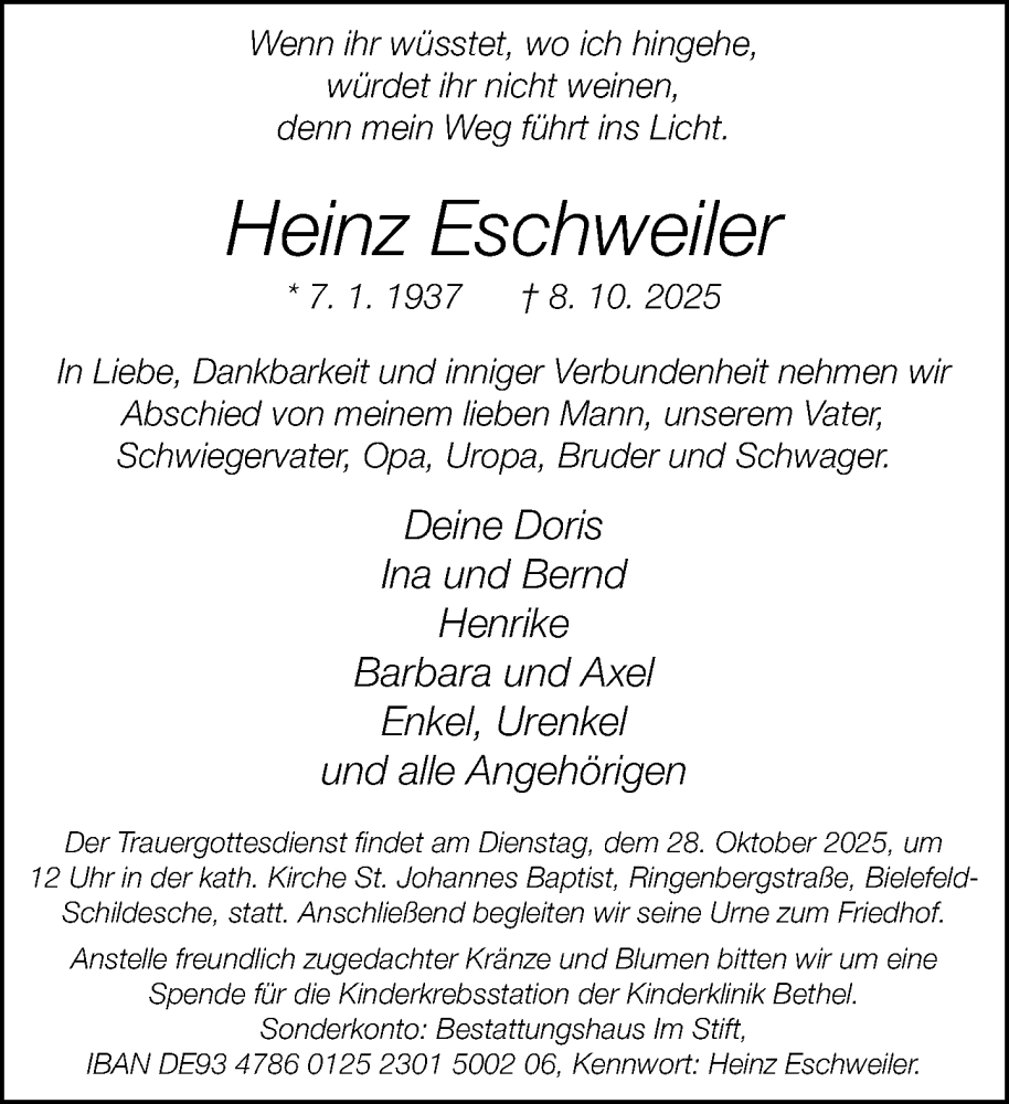 Hier finden Sie alle Traueranzeigen aus der Zeitung, die bisher für Heinz Eschweiler erschienen sind. Weitere Traueranzeigen, die in der Zeitung erscheinen, werden hier ebenfalls aufgelistet