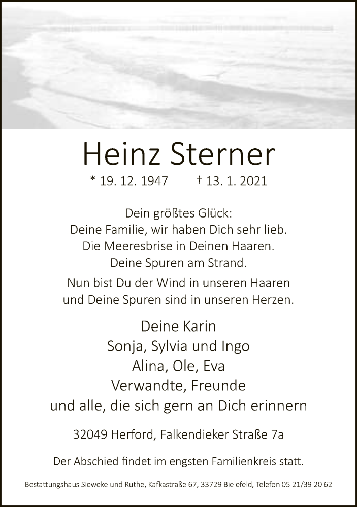 Hier finden Sie alle Traueranzeigen aus der Zeitung, die bisher für Heinz Sterner erschienen sind. Weitere Traueranzeigen, die in der Zeitung erscheinen, werden hier ebenfalls aufgelistet