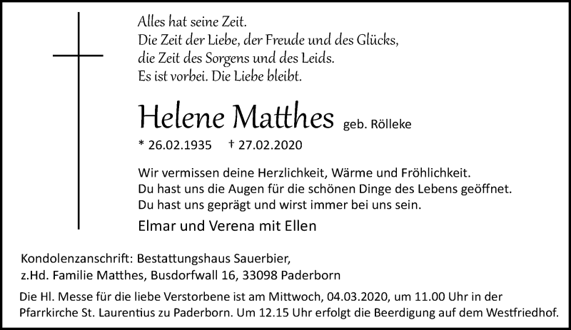 Hier finden Sie alle Traueranzeigen aus der Zeitung, die bisher für Helene Matthes erschienen sind. Weitere Traueranzeigen, die in der Zeitung erscheinen, werden hier ebenfalls aufgelistet