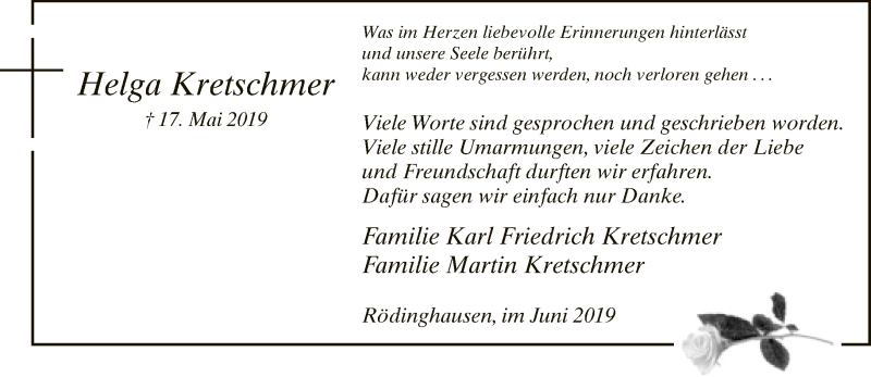 Hier finden Sie alle Traueranzeigen aus der Zeitung, die bisher für Helga Kretschmer erschienen sind. Weitere Traueranzeigen, die in der Zeitung erscheinen, werden hier ebenfalls aufgelistet
