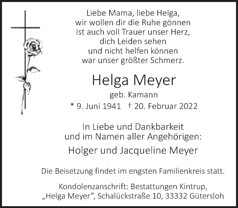 Hier finden Sie alle Traueranzeigen aus der Zeitung, die bisher für Helga Meyer erschienen sind. Weitere Traueranzeigen, die in der Zeitung erscheinen, werden hier ebenfalls aufgelistet
