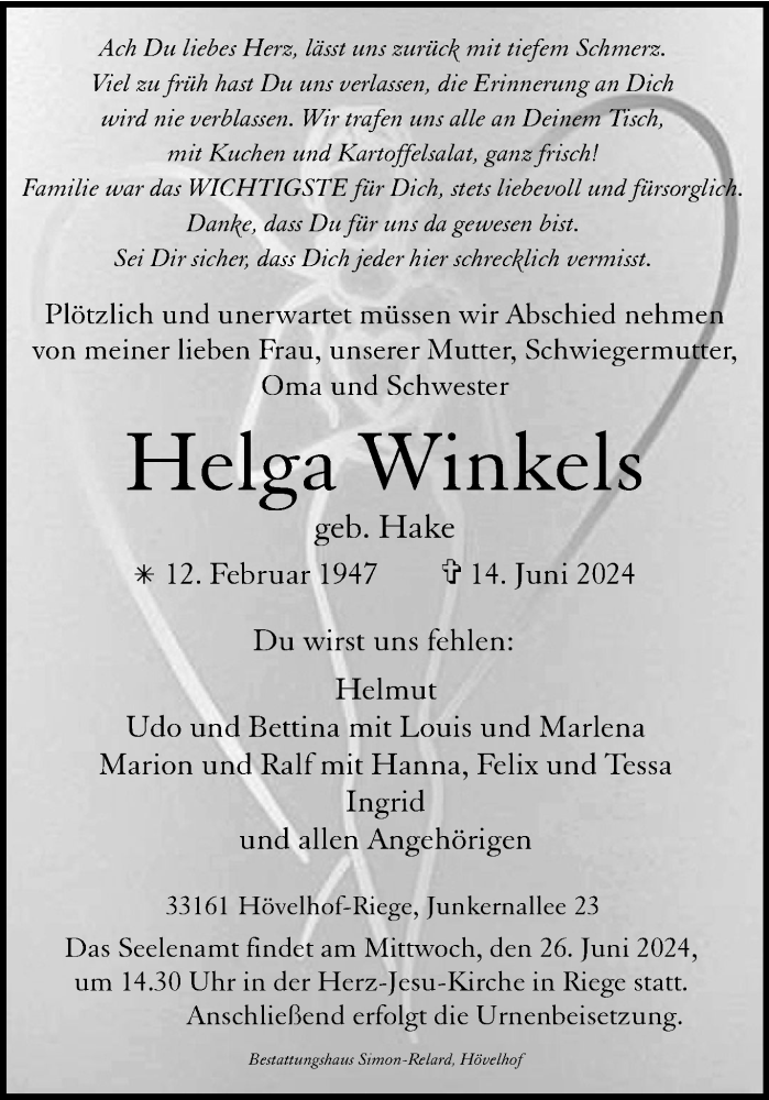 Hier finden Sie alle Traueranzeigen aus der Zeitung, die bisher für Helga Winkels erschienen sind. Weitere Traueranzeigen, die in der Zeitung erscheinen, werden hier ebenfalls aufgelistet