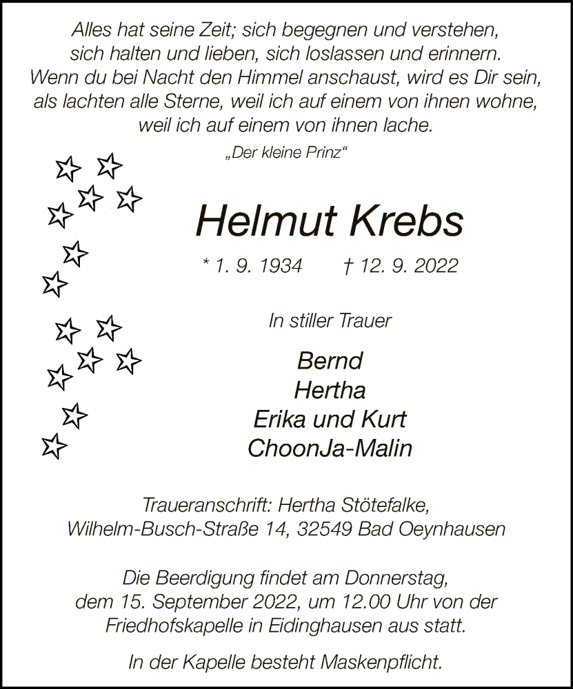 Hier finden Sie alle Traueranzeigen aus der Zeitung, die bisher für Helmut Krebs erschienen sind. Weitere Traueranzeigen, die in der Zeitung erscheinen, werden hier ebenfalls aufgelistet