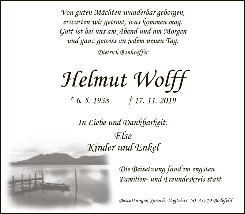 Hier finden Sie alle Traueranzeigen aus der Zeitung, die bisher für Helmut Wolff erschienen sind. Weitere Traueranzeigen, die in der Zeitung erscheinen, werden hier ebenfalls aufgelistet
