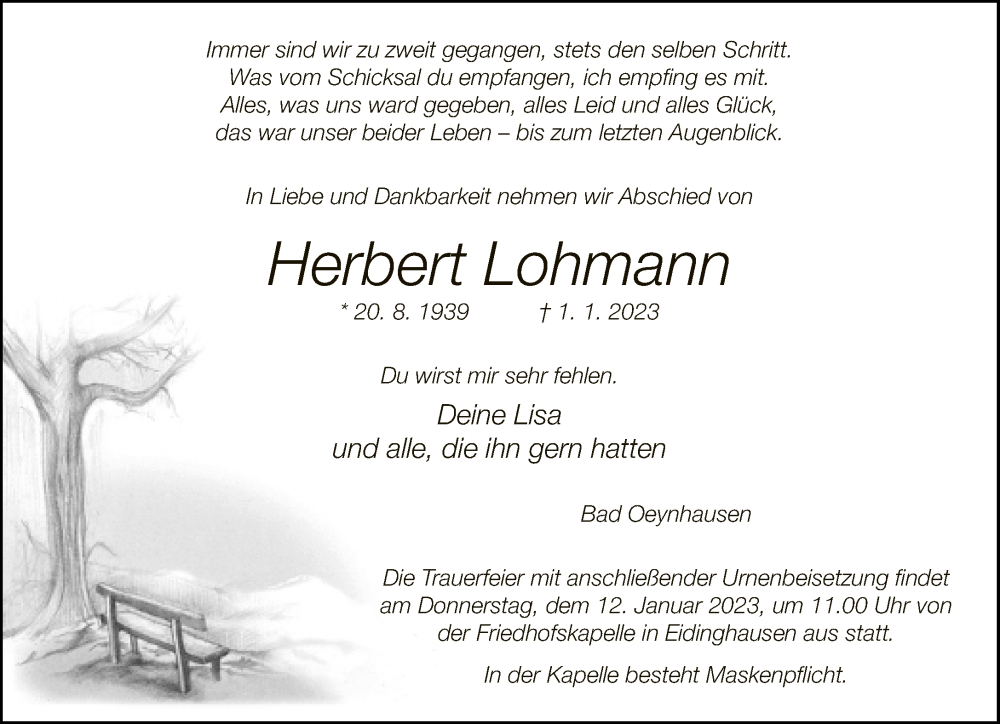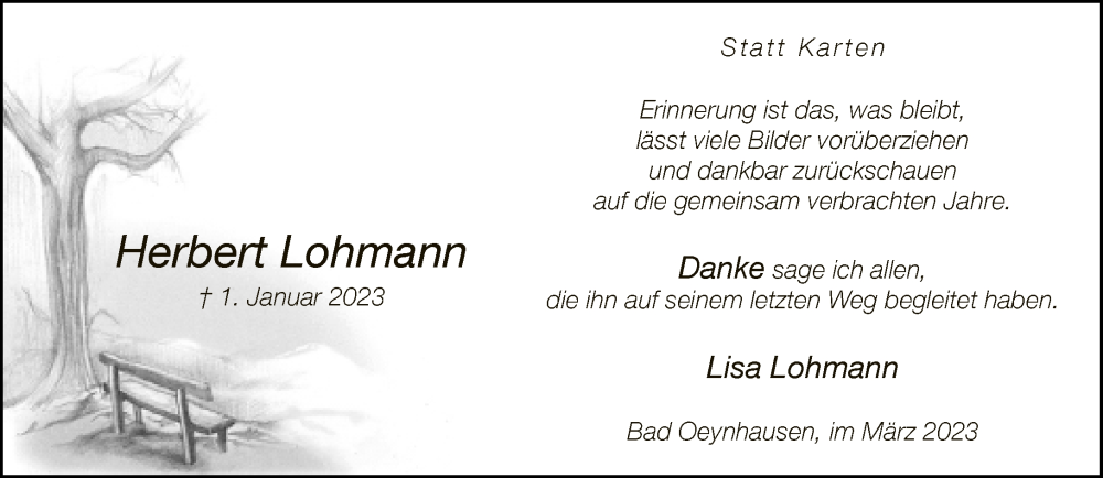 Hier finden Sie alle Traueranzeigen aus der Zeitung, die bisher für Herbert Lohmann erschienen sind. Weitere Traueranzeigen, die in der Zeitung erscheinen, werden hier ebenfalls aufgelistet