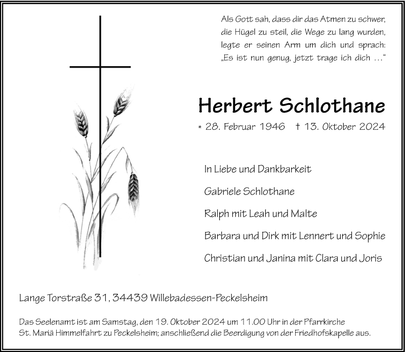 Hier finden Sie alle Traueranzeigen aus der Zeitung, die bisher für Herbert Schlothane erschienen sind. Weitere Traueranzeigen, die in der Zeitung erscheinen, werden hier ebenfalls aufgelistet