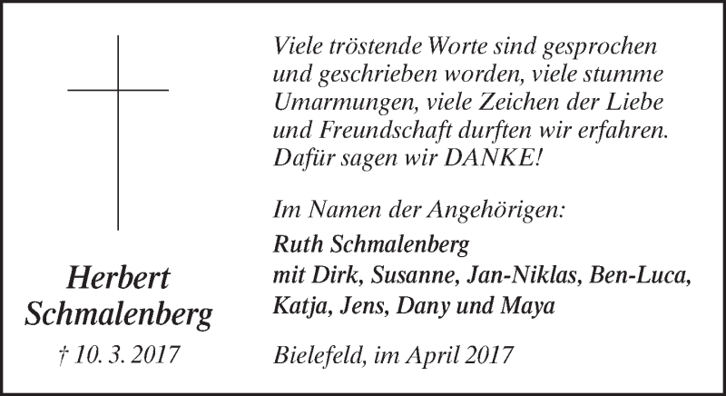 Hier finden Sie alle Traueranzeigen aus der Zeitung, die bisher für Herbert Schmalenberg erschienen sind. Weitere Traueranzeigen, die in der Zeitung erscheinen, werden hier ebenfalls aufgelistet