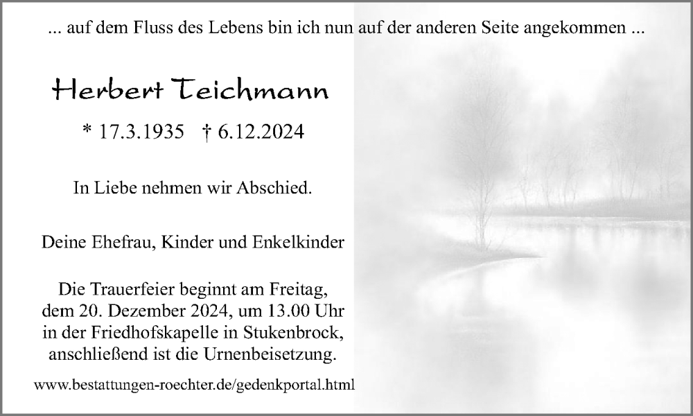 Hier finden Sie alle Traueranzeigen aus der Zeitung, die bisher für Herbert Teichmann erschienen sind. Weitere Traueranzeigen, die in der Zeitung erscheinen, werden hier ebenfalls aufgelistet