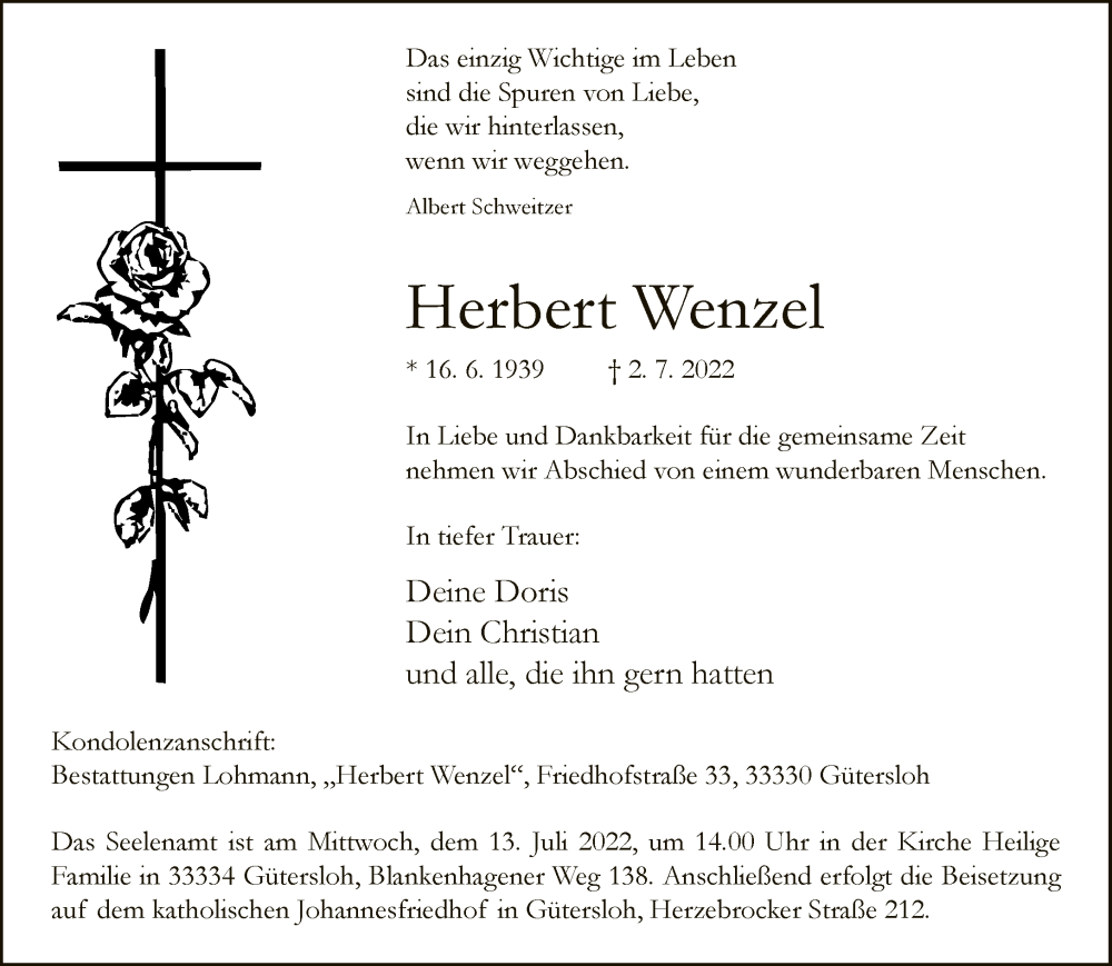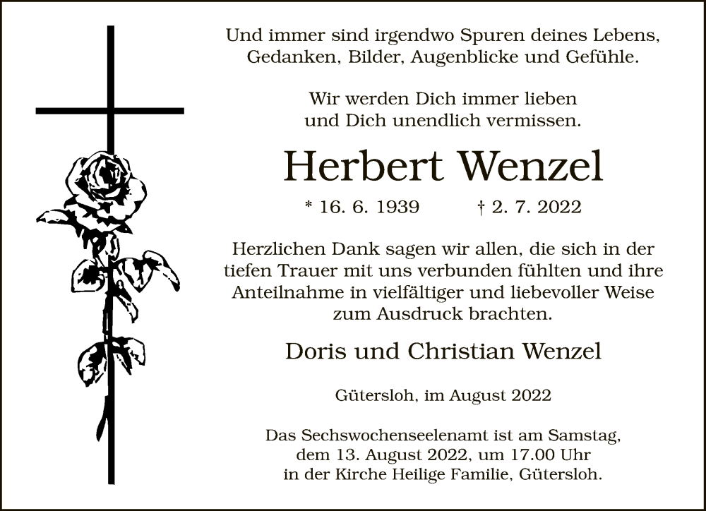Hier finden Sie alle Traueranzeigen aus der Zeitung, die bisher für Herbert Wenzel erschienen sind. Weitere Traueranzeigen, die in der Zeitung erscheinen, werden hier ebenfalls aufgelistet