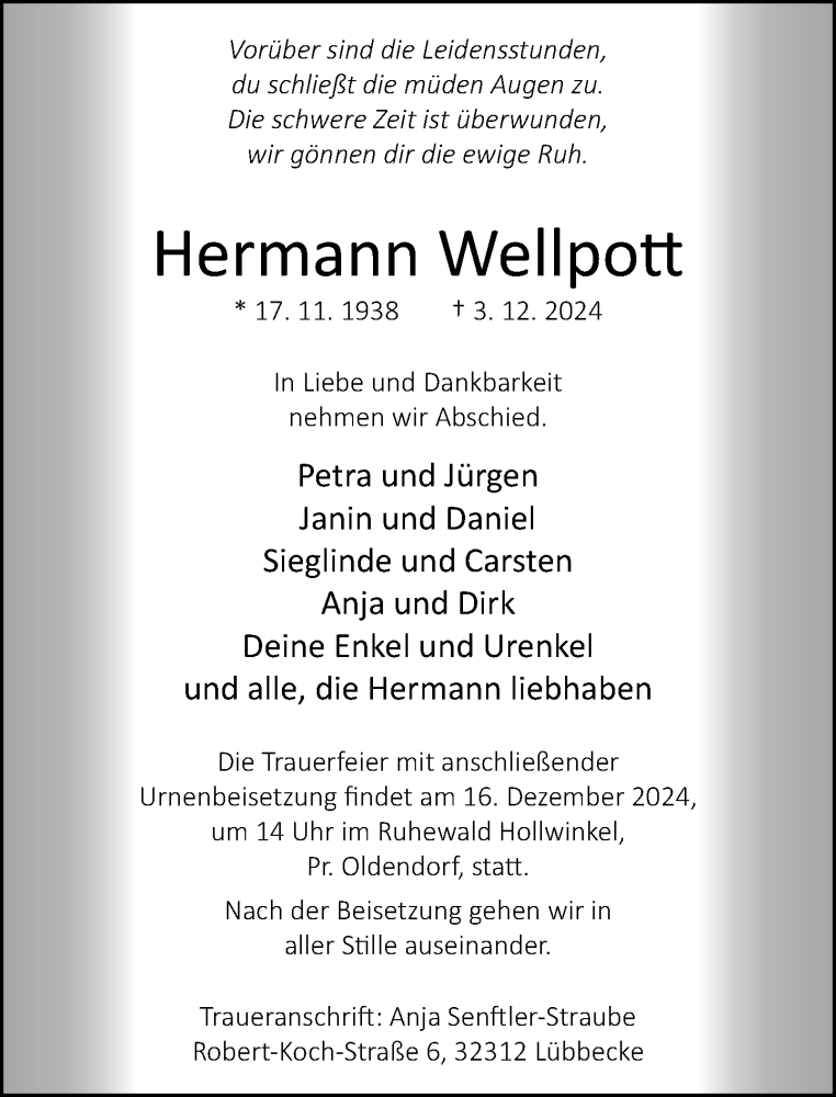 Hier finden Sie alle Traueranzeigen aus der Zeitung, die bisher für Hermann Weltpott erschienen sind. Weitere Traueranzeigen, die in der Zeitung erscheinen, werden hier ebenfalls aufgelistet