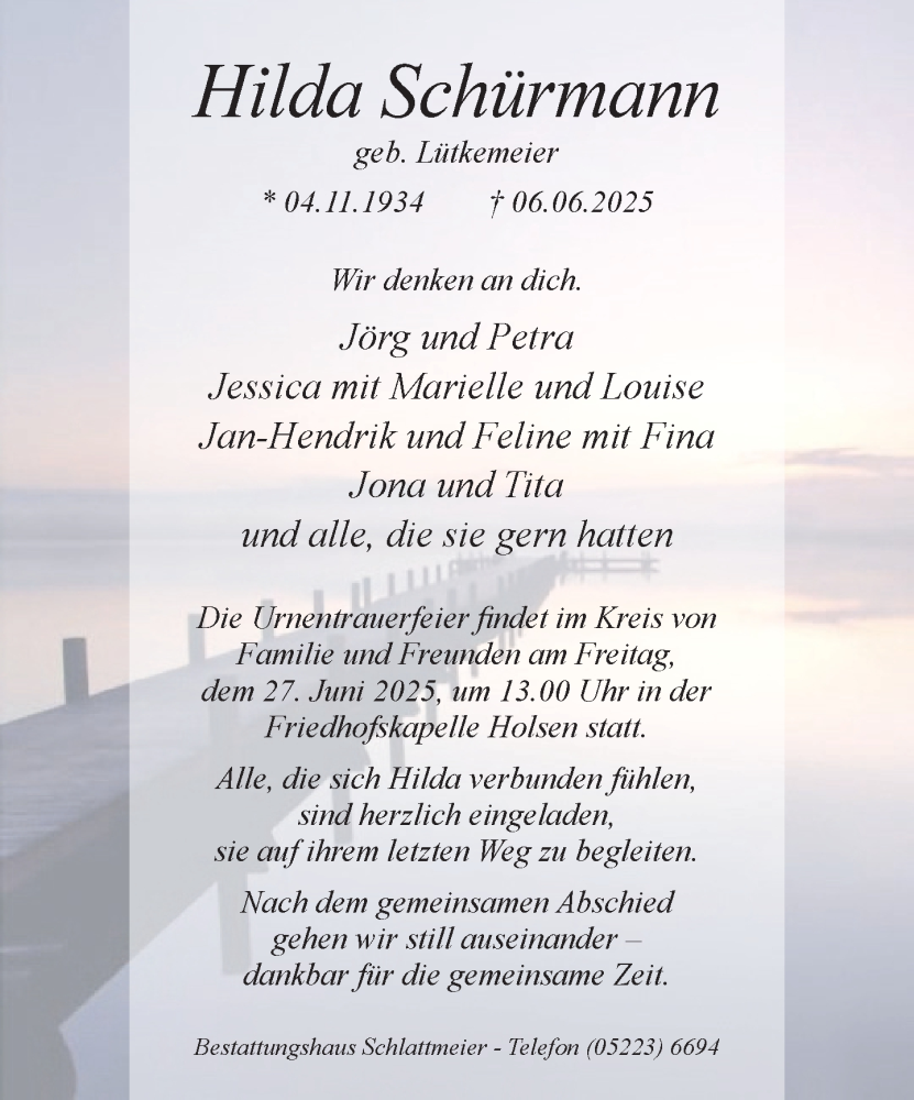 Hier finden Sie alle Traueranzeigen aus der Zeitung, die bisher für Hilda Schürmann erschienen sind. Weitere Traueranzeigen, die in der Zeitung erscheinen, werden hier ebenfalls aufgelistet