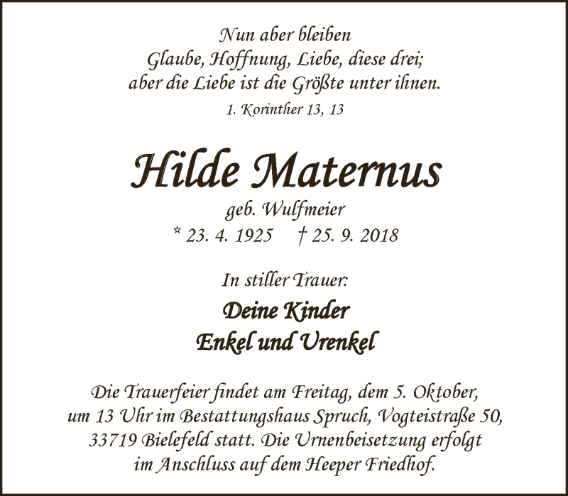 Hier finden Sie alle Traueranzeigen aus der Zeitung, die bisher für Hilde Maternus erschienen sind. Weitere Traueranzeigen, die in der Zeitung erscheinen, werden hier ebenfalls aufgelistet