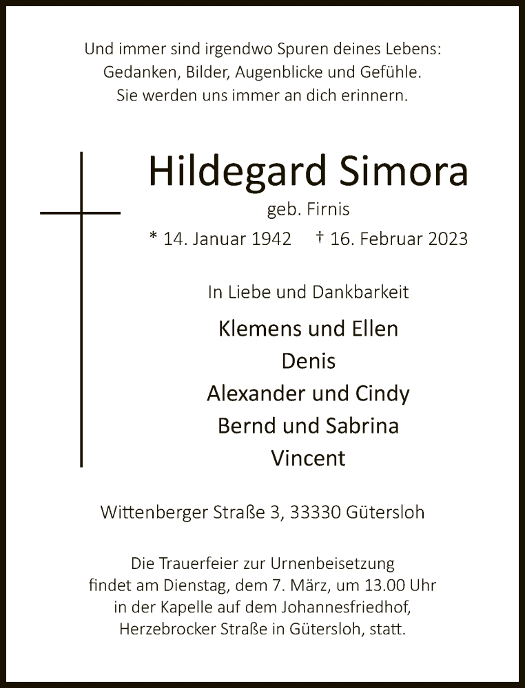 Hier finden Sie alle Traueranzeigen aus der Zeitung, die bisher für Hildegard Simora erschienen sind. Weitere Traueranzeigen, die in der Zeitung erscheinen, werden hier ebenfalls aufgelistet