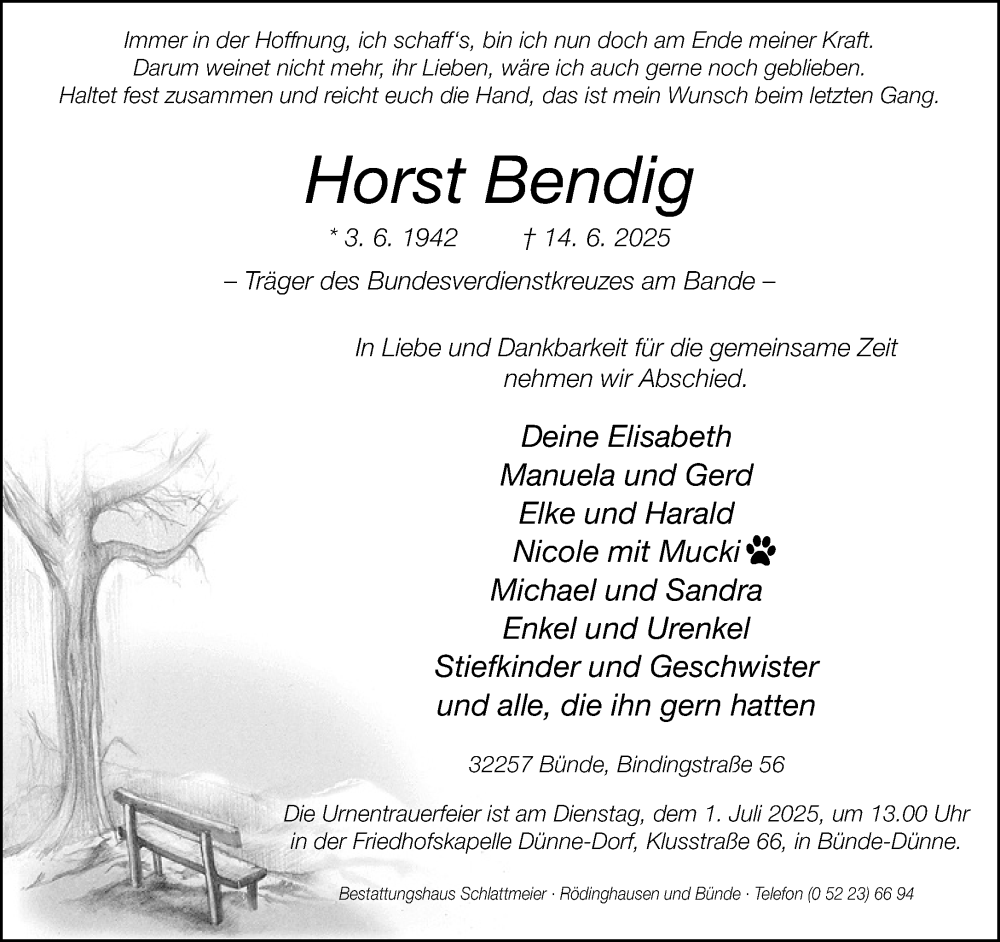 Hier finden Sie alle Traueranzeigen aus der Zeitung, die bisher für Horst Bendig erschienen sind. Weitere Traueranzeigen, die in der Zeitung erscheinen, werden hier ebenfalls aufgelistet