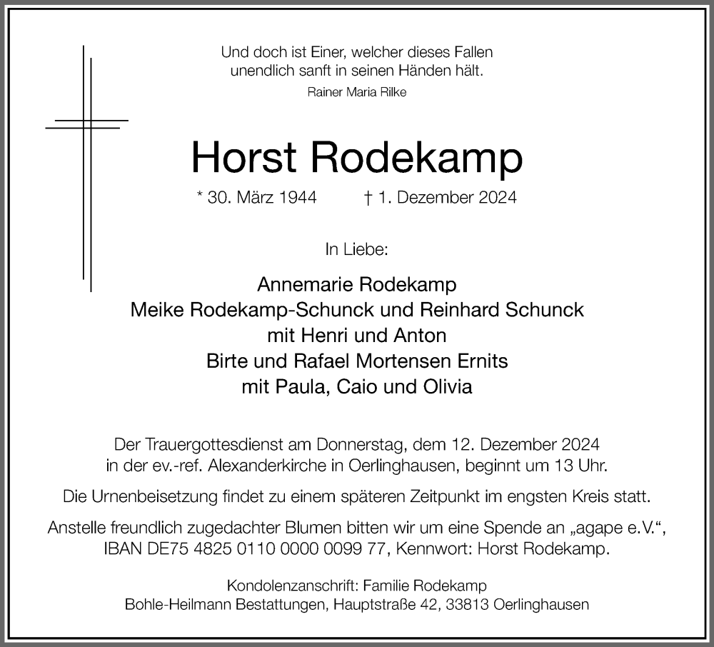 Hier finden Sie alle Traueranzeigen aus der Zeitung, die bisher für Horst Rodekamp erschienen sind. Weitere Traueranzeigen, die in der Zeitung erscheinen, werden hier ebenfalls aufgelistet