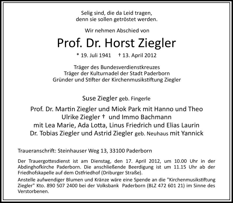 Hier finden Sie alle Traueranzeigen aus der Zeitung, die bisher für Horst Ziegler erschienen sind. Weitere Traueranzeigen, die in der Zeitung erscheinen, werden hier ebenfalls aufgelistet