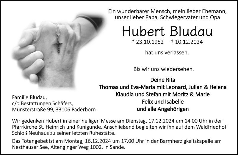 Hier finden Sie alle Traueranzeigen aus der Zeitung, die bisher für Hubert Bludau erschienen sind. Weitere Traueranzeigen, die in der Zeitung erscheinen, werden hier ebenfalls aufgelistet