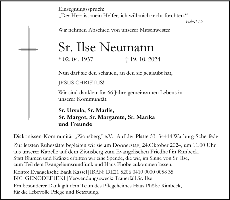 Hier finden Sie alle Traueranzeigen aus der Zeitung, die bisher für Ilse Neumann erschienen sind. Weitere Traueranzeigen, die in der Zeitung erscheinen, werden hier ebenfalls aufgelistet