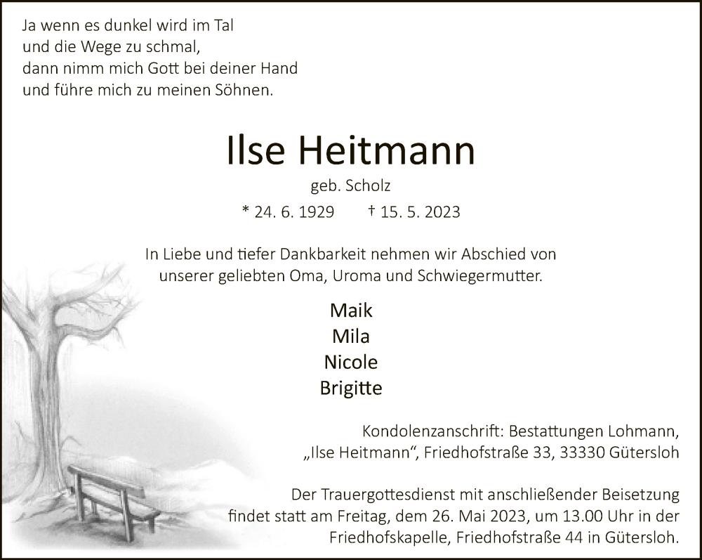 Hier finden Sie alle Traueranzeigen aus der Zeitung, die bisher für Ilse Reitmann erschienen sind. Weitere Traueranzeigen, die in der Zeitung erscheinen, werden hier ebenfalls aufgelistet
