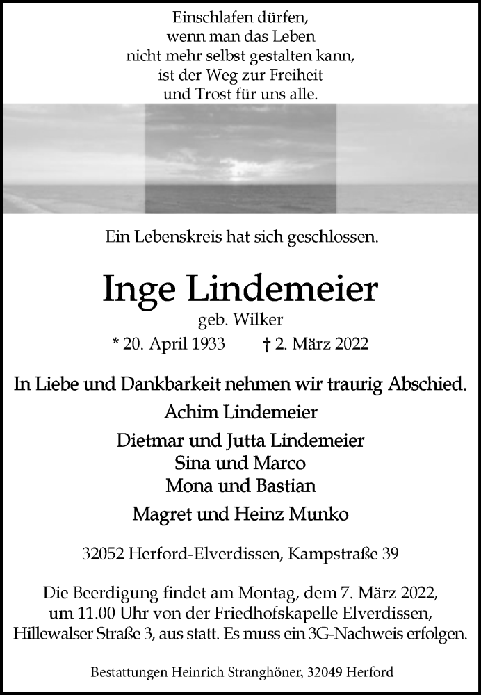 Hier finden Sie alle Traueranzeigen aus der Zeitung, die bisher für Inge Lindemeier erschienen sind. Weitere Traueranzeigen, die in der Zeitung erscheinen, werden hier ebenfalls aufgelistet