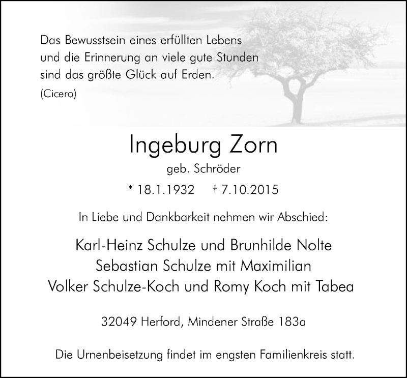 Hier finden Sie alle Traueranzeigen aus der Zeitung, die bisher für Ingeburg Zorn erschienen sind. Weitere Traueranzeigen, die in der Zeitung erscheinen, werden hier ebenfalls aufgelistet