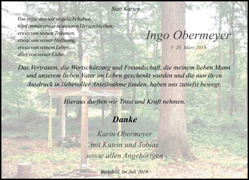 Hier finden Sie alle Traueranzeigen aus der Zeitung, die bisher für Ingo Obermeyer erschienen sind. Weitere Traueranzeigen, die in der Zeitung erscheinen, werden hier ebenfalls aufgelistet